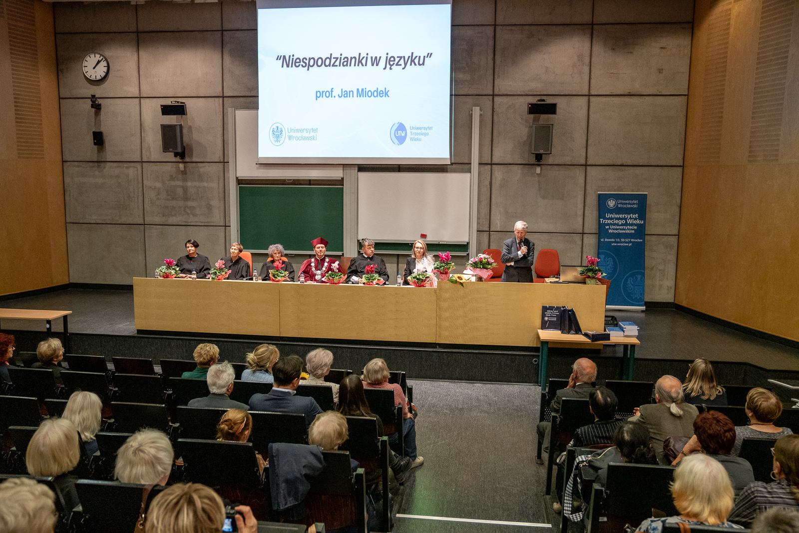 Uroczysta Inauguracja Roku Akademickiego odbyła się 09.10.2023 r. w Auli im. A. Mycielskiego, na Wydziale Prawa, Administracji i Ekonomii UWr. Wykład inauguracyjny wygłosił prof. Jan Miodek.